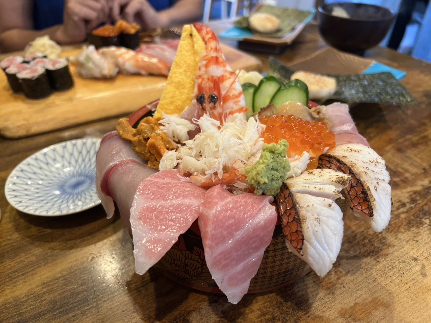 また、市場敷地内のお寿司屋さん(名前は失念。。八百屋さんのお隣)で頼んだ「海鮮丼」がモリモリでむちゃくちゃ美味かった!