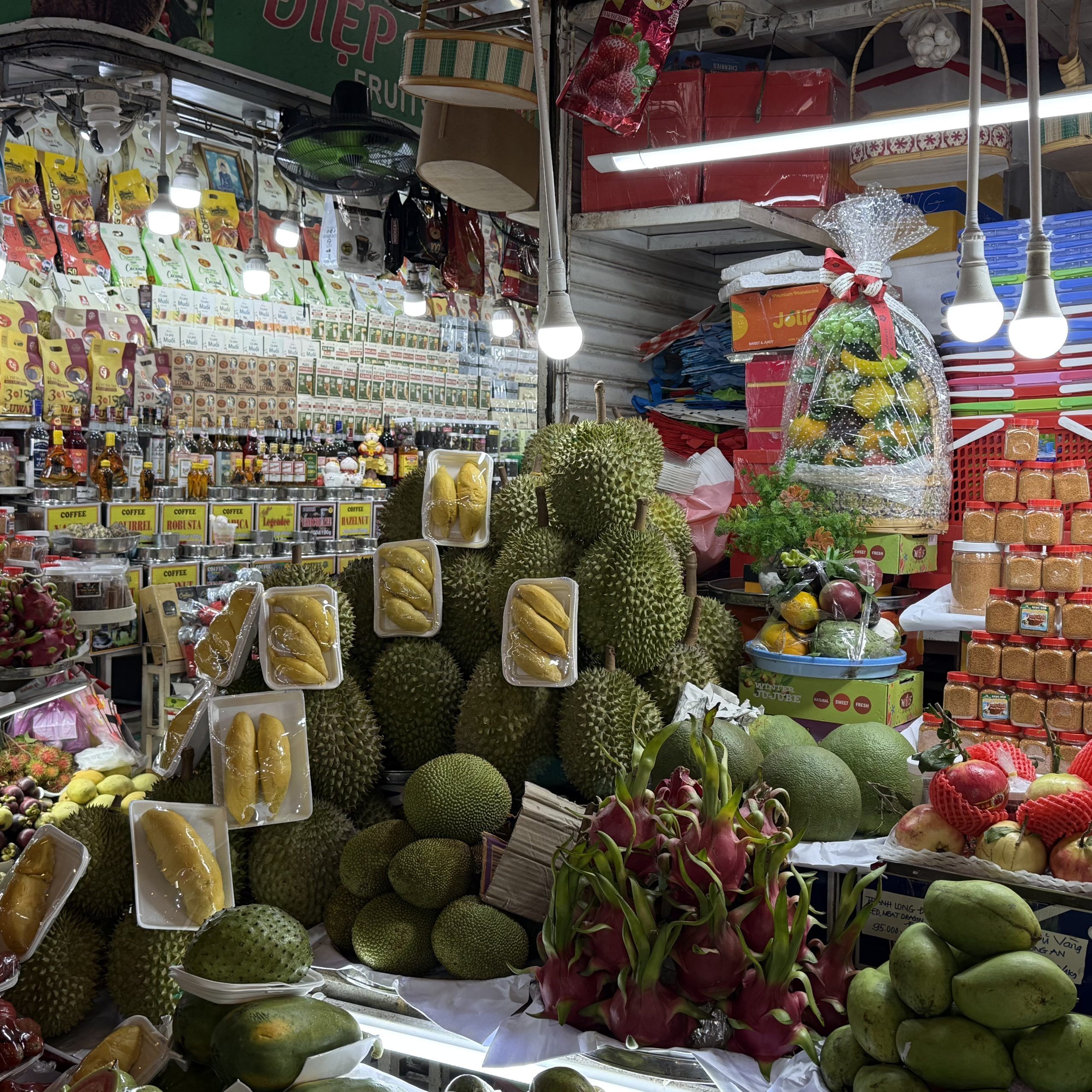 そして、定番ではあるものの、ベンタイン市場に冷やかし&軽食を取りに。市場の一部が食堂(屋台食堂?)ぽくなっているので、適当に座って生春巻き&揚げ春巻きをオーダー。