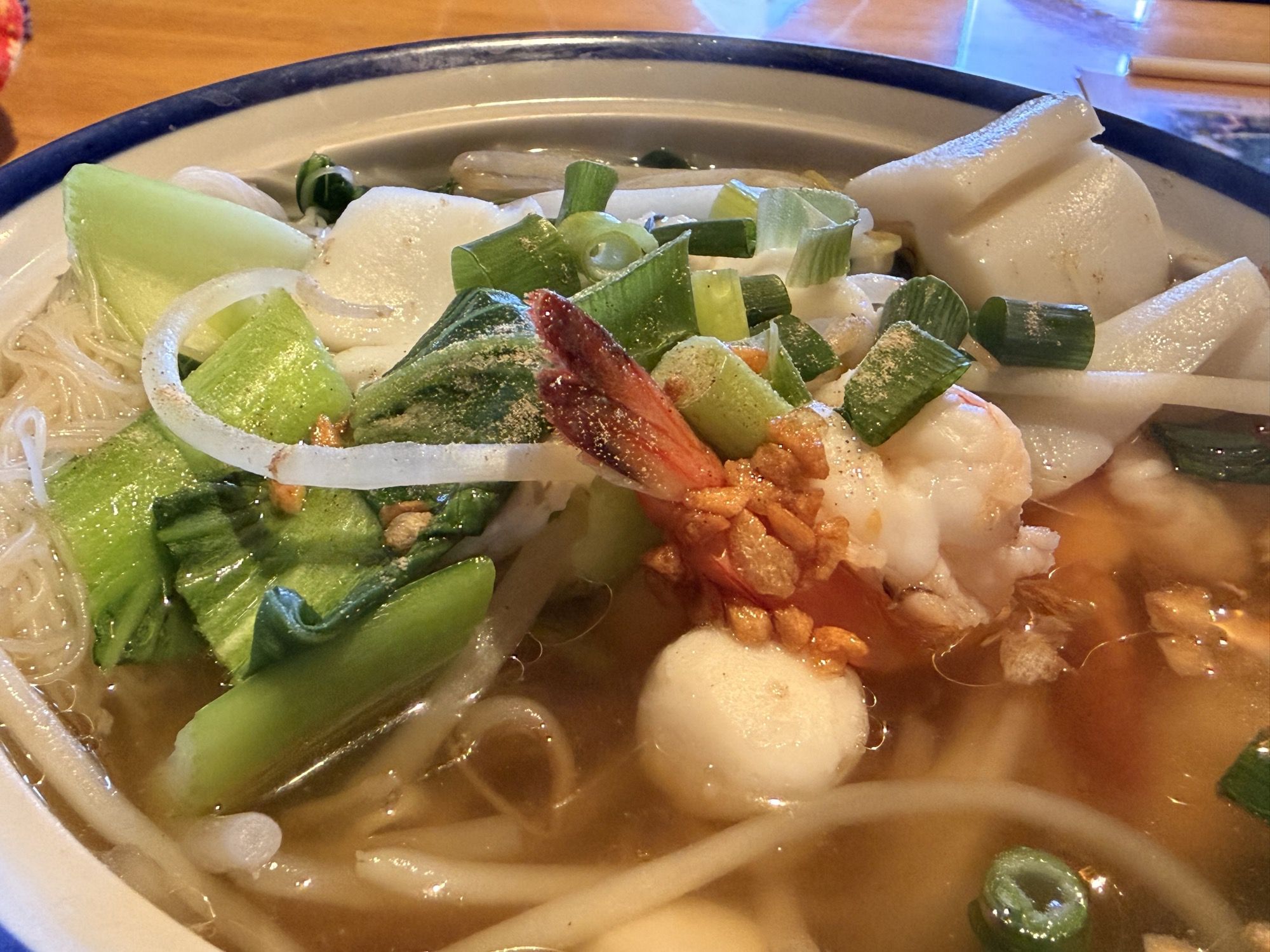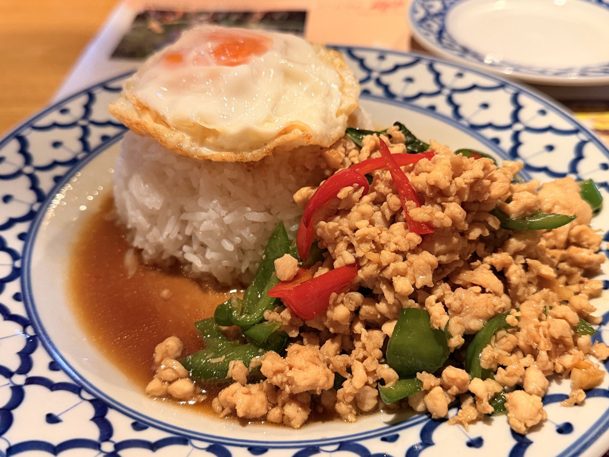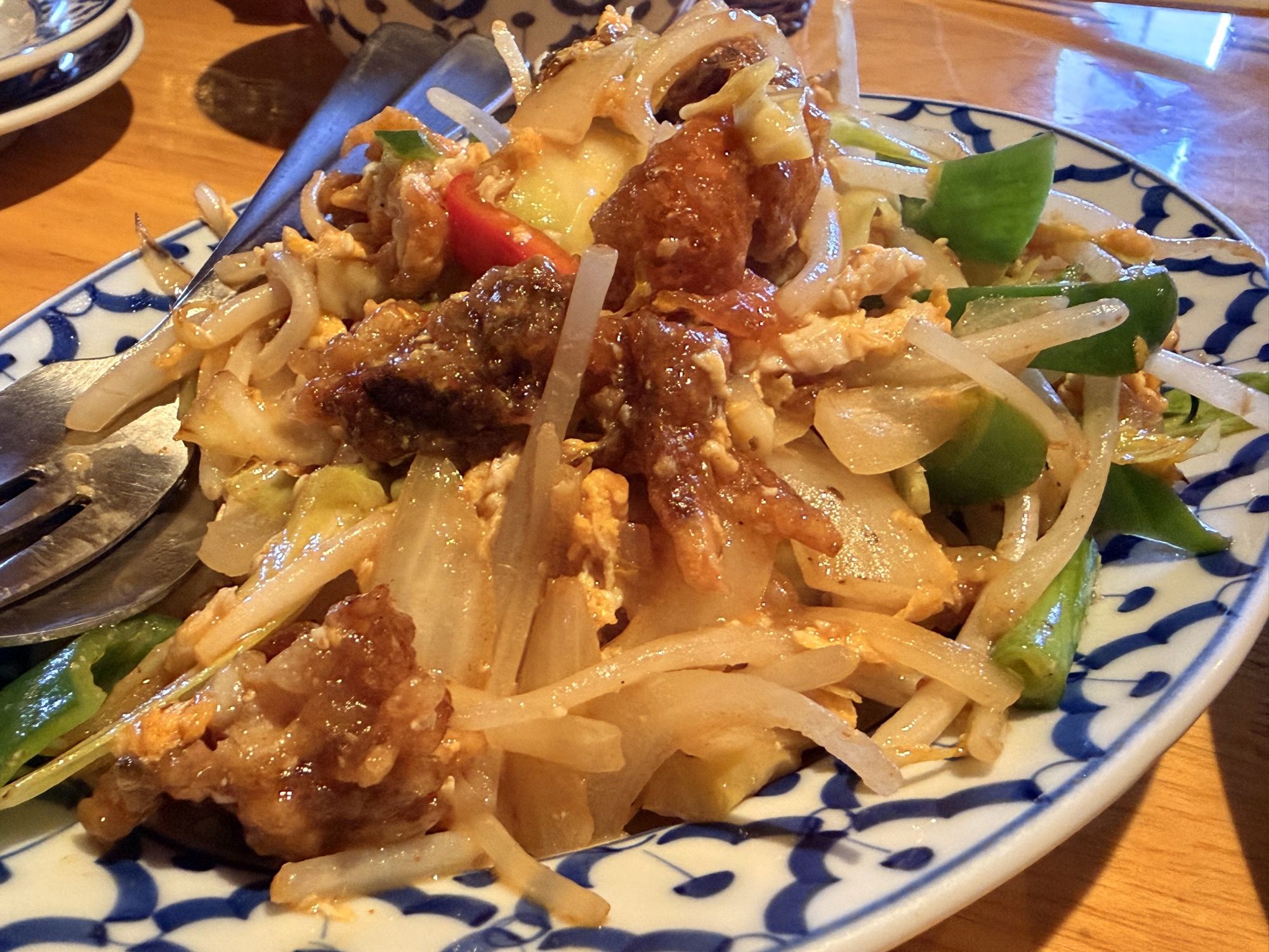 そしてド定番の「ガパオライス(カウ ガプラウ カイ カイダーウ)」「ソフトシェルクラブの卵炒め(プーナム パット カイ)」「極細米麺のシーフードラーメン(センミー ナーム タレー)」などを頼んで待つこと十数分、むちゃくちゃ速いスピードで全てが出てきてビックリした!手を抜いているということでもなく、仕込みがしっかりしているんだろうな、と思った。味はどれも絶品で、二人とも大絶賛でした。