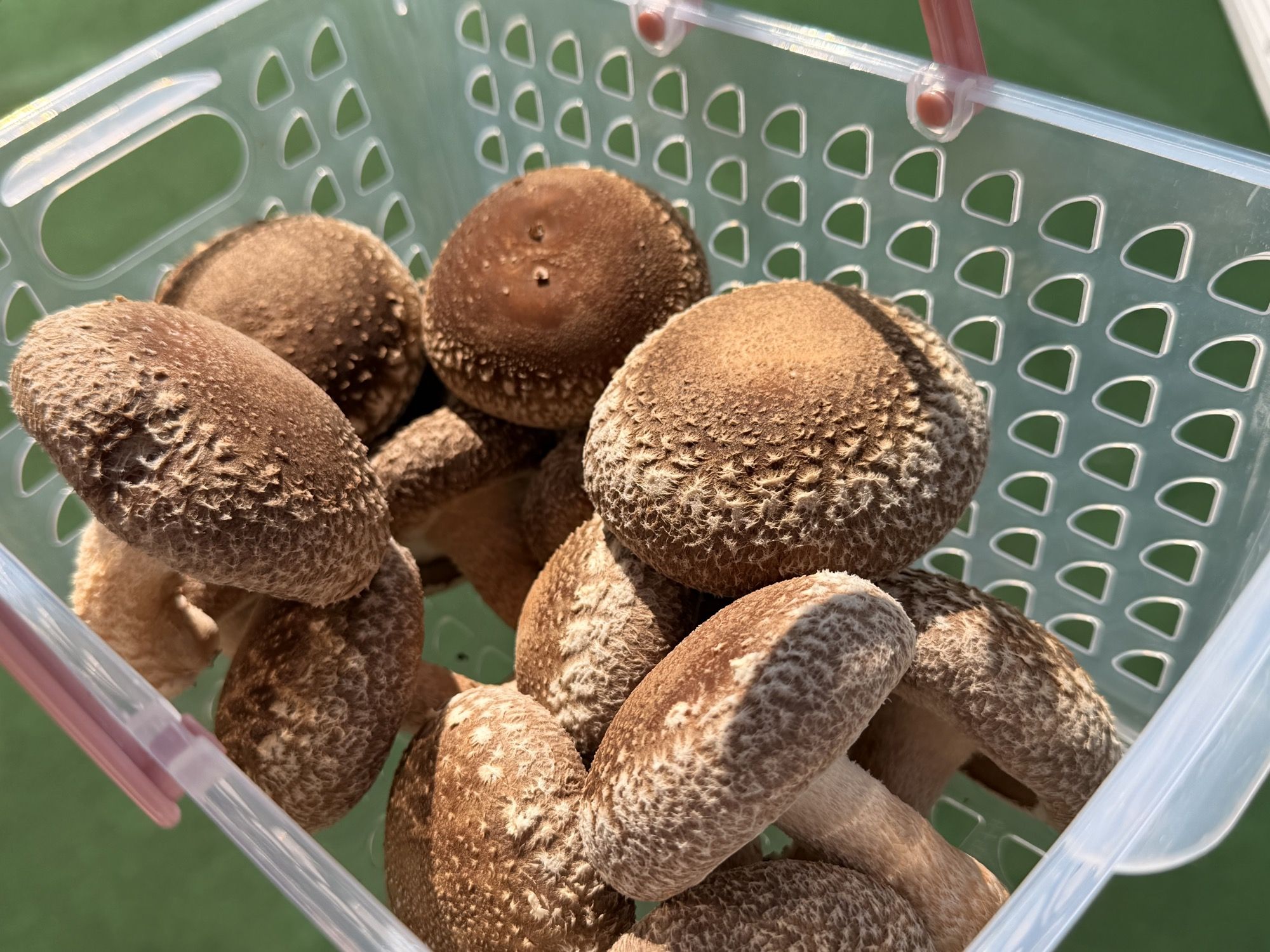 1グループ2,000円で400gまでは狩り放題!石突がしっかりしていて傘が大きく厚ぼったく、少し巻いているのが美味しいとスタッフさんから聞いて、そういう椎茸を狙って収穫します。